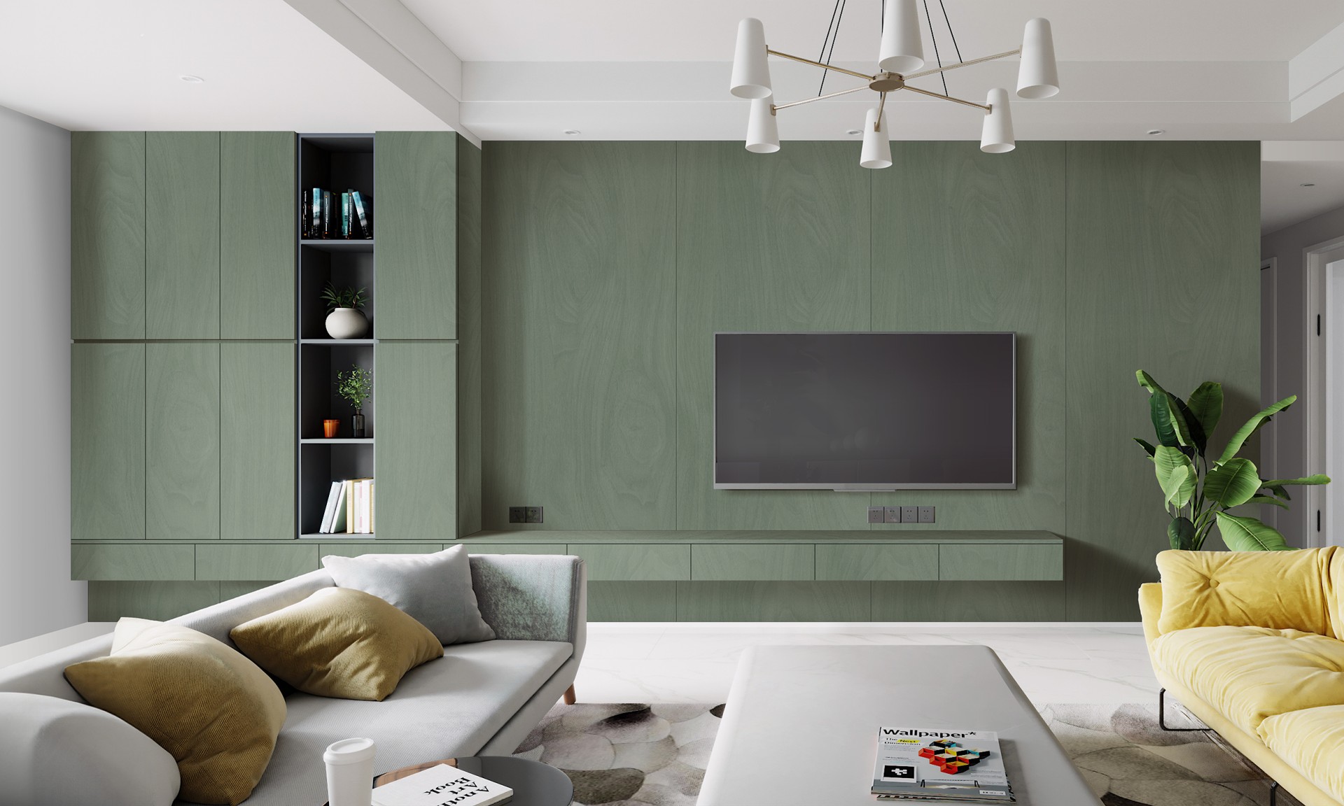 其清新綠意給予書房一種充滿活力的感覺,仿佛身處於一片清涼的森林中,