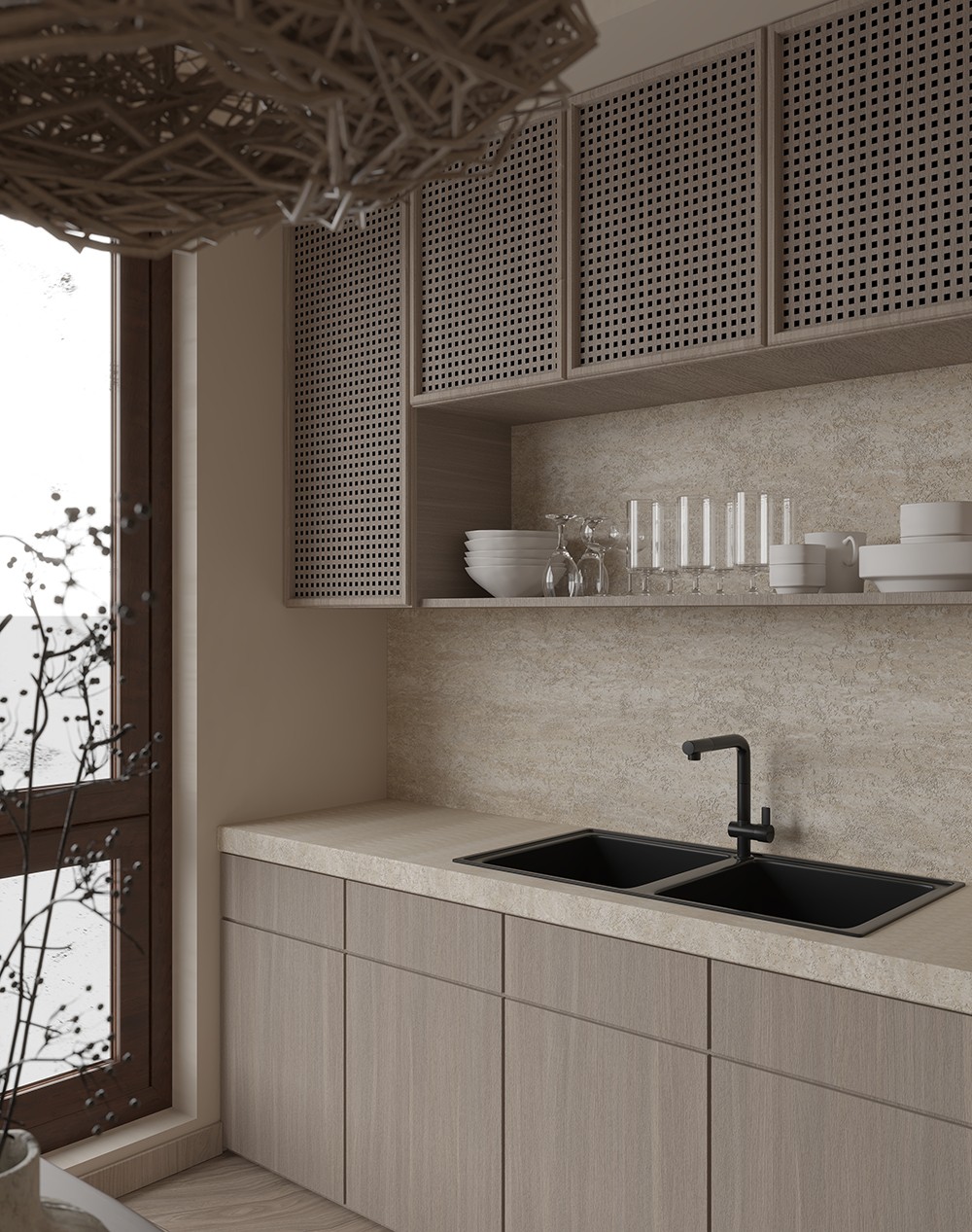 猶如微風輕拂樹葉的觸感,綠意中隱約交織著細緻的木紋,如詩如畫。像是大自然的低語,是木林的秘密,為整個空間帶來自然與溫暖,讓心靈感到悠然。